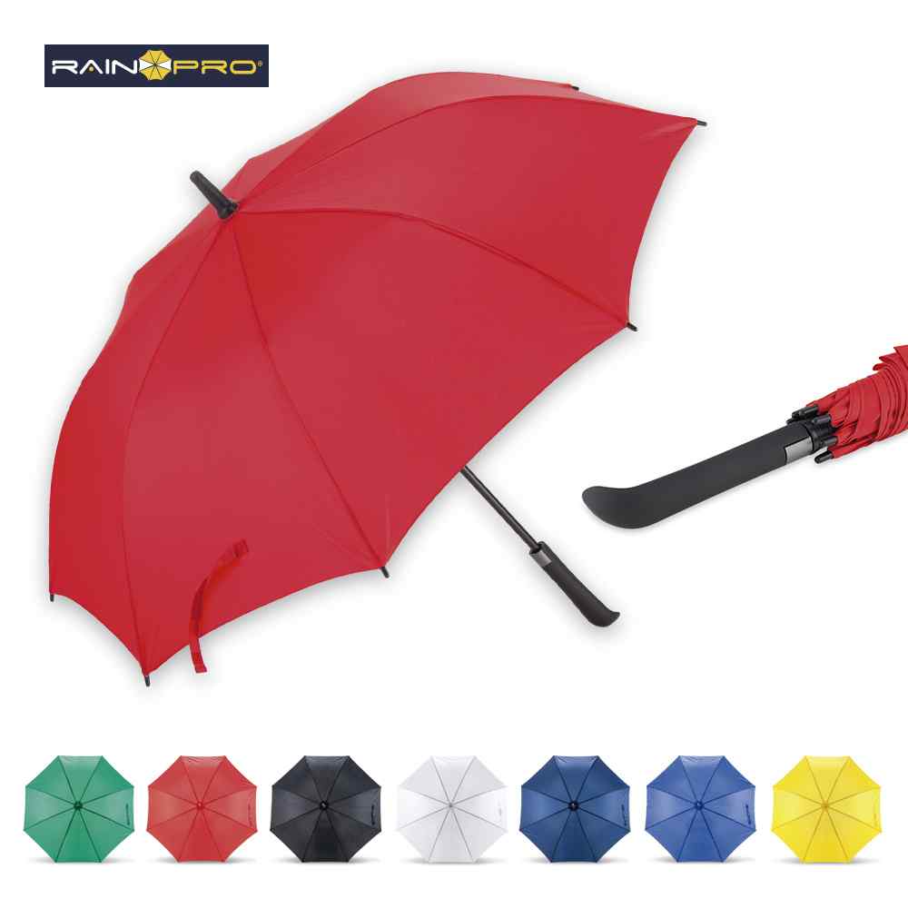 Poliéster pongee 190T. Mango de lujo en caucho y herraje metálico con fibra de vidrio reforzado. Apertura automática,