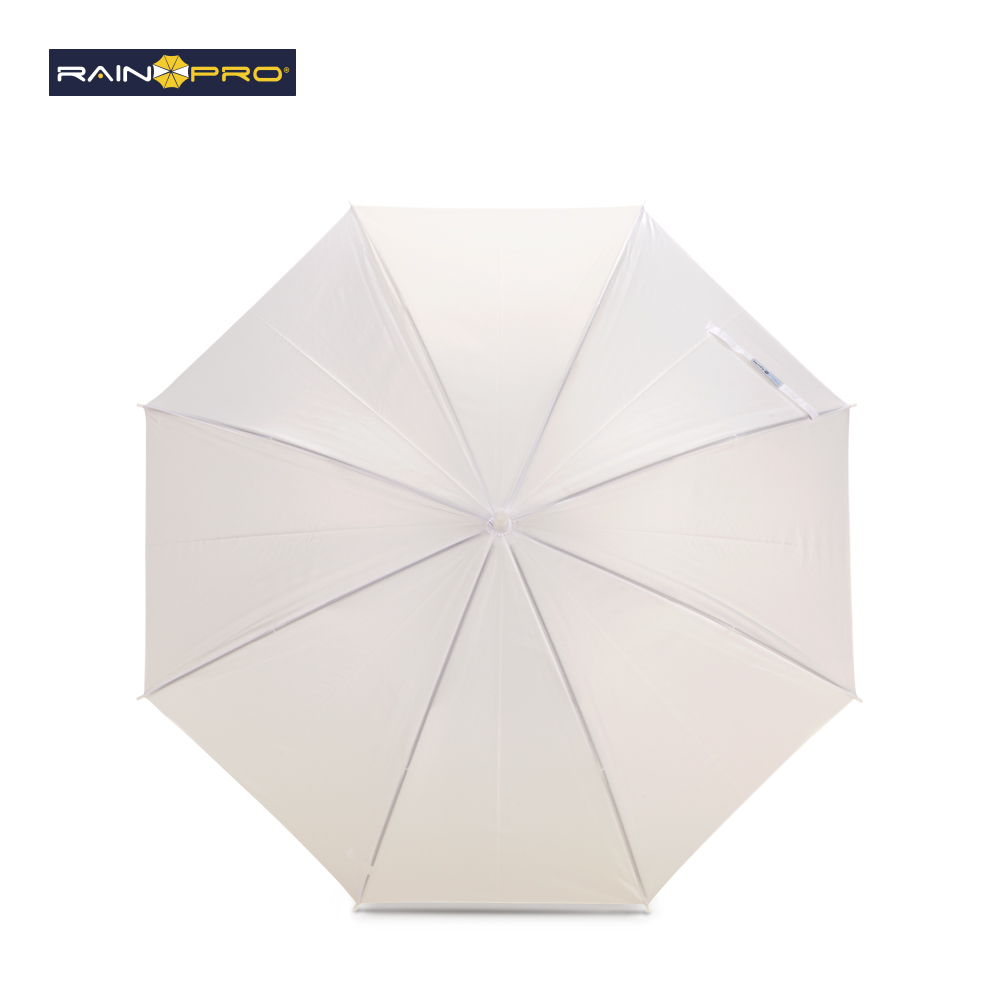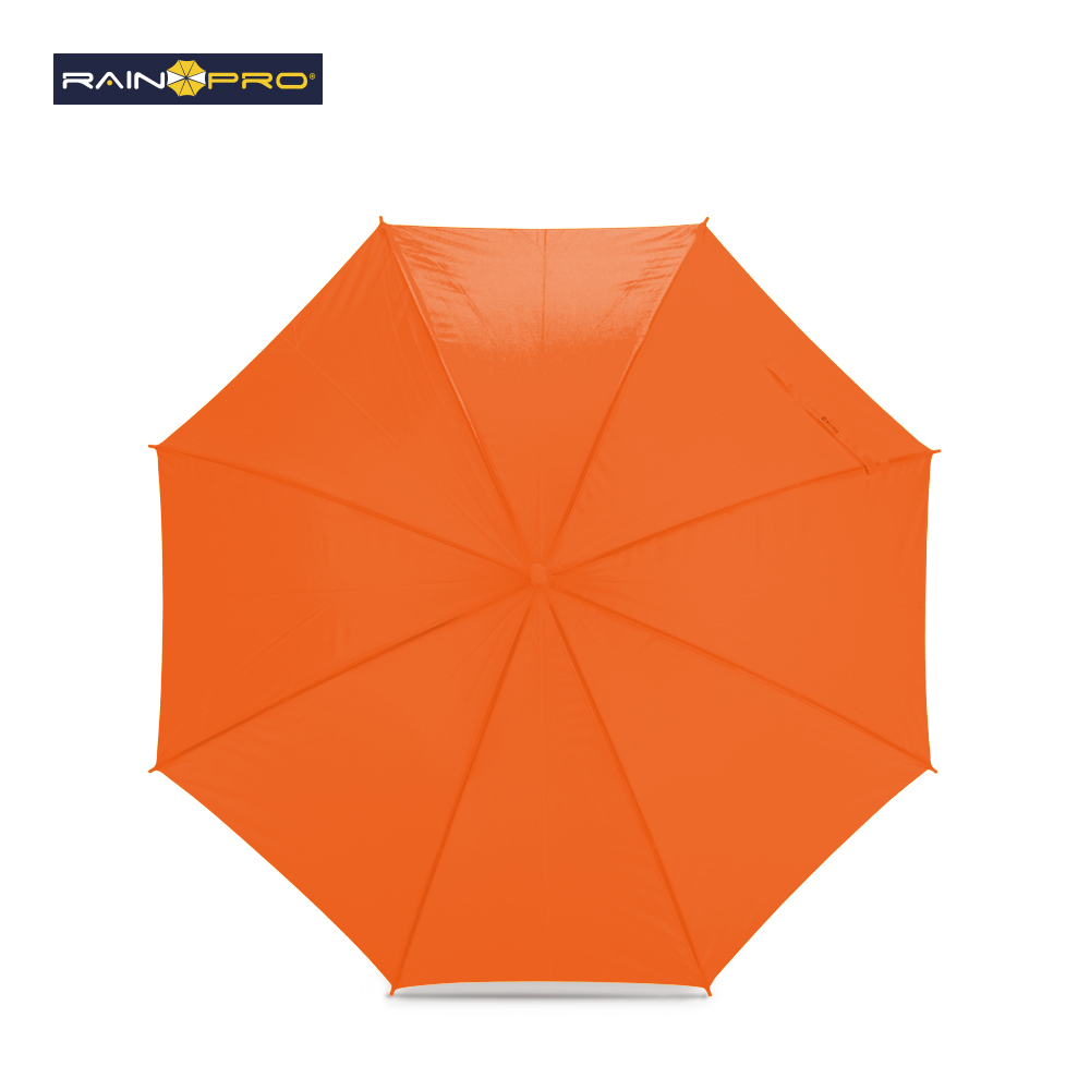 Poliéster pongee. Apertura automática, cierre manual. Herraje metálico. Mango curvo plástico. 8 cascos.