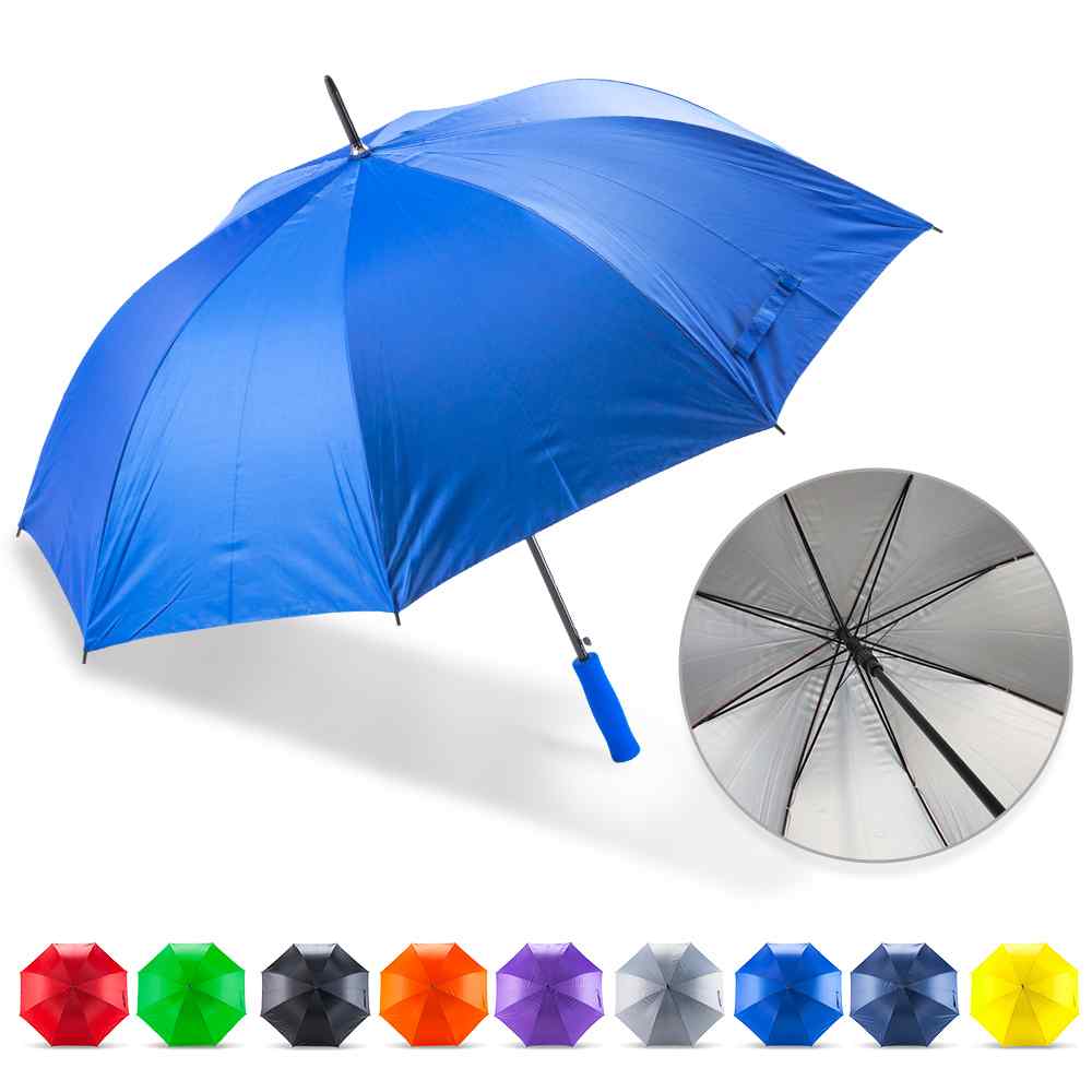 Poliéster, interior plateado. Mango en espuma y herraje metálico. 8 Cascos. Semiautomático. Medidas: 27” Cobertura: 120 cm Casco: 45 cm ancho. Largo total: 92 cm Marca: 25 cm / Screen