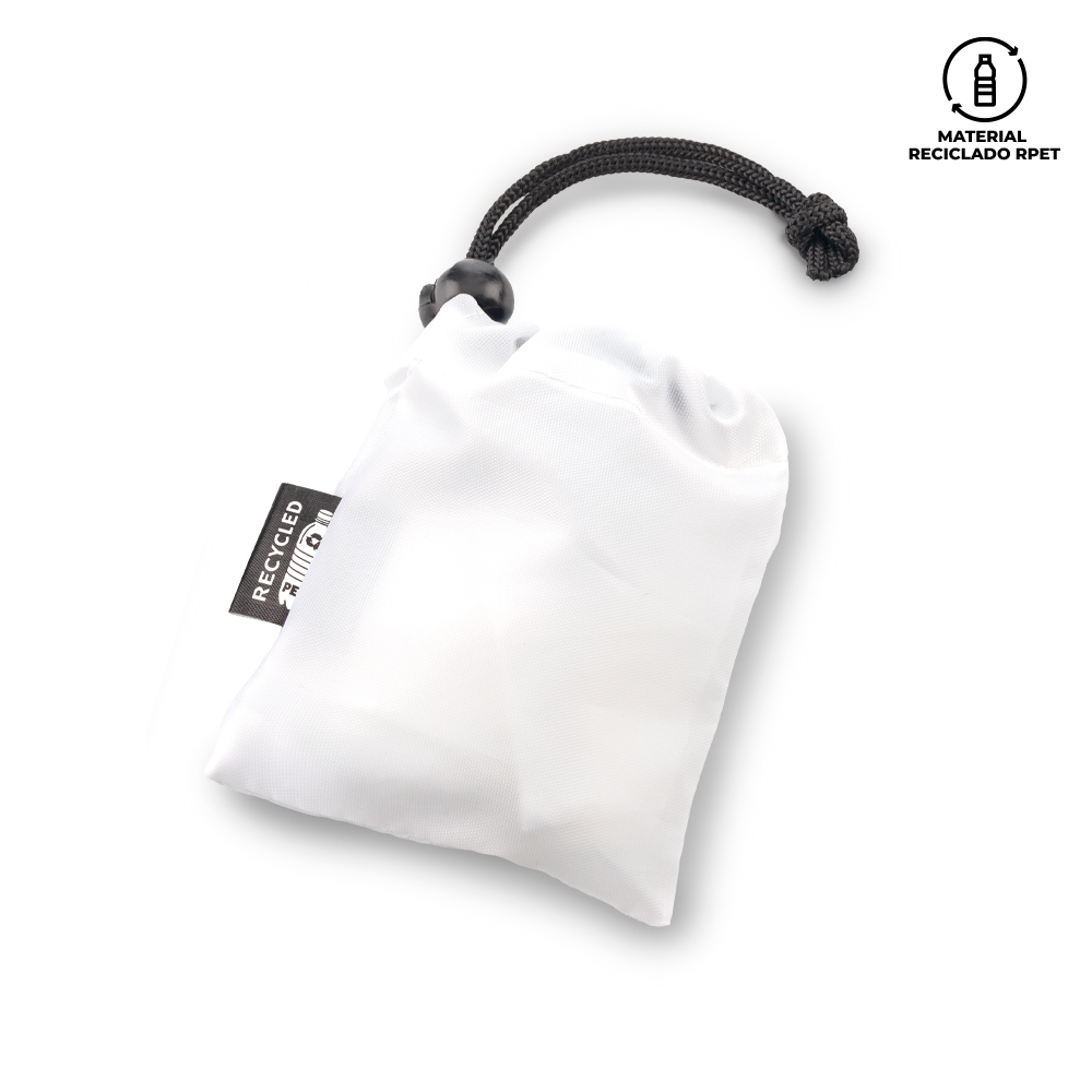Capa poncho con bolsa reciclada RPET. Capa 123 cm x 124 cm. Medidas: Bolsa cerrada: 12 cm x 10 cm. Marca: 5.5 cm / Screen.