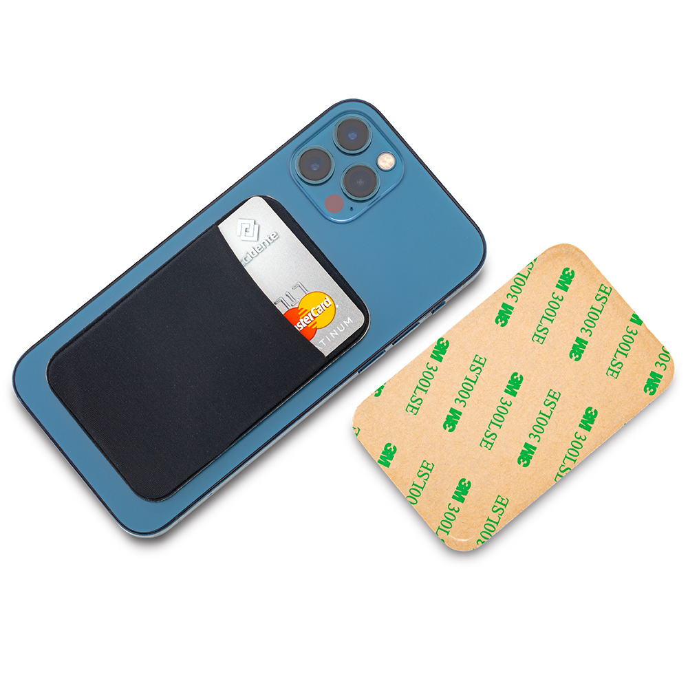 Portatarjetas adhesivo con parte superior en lycra.