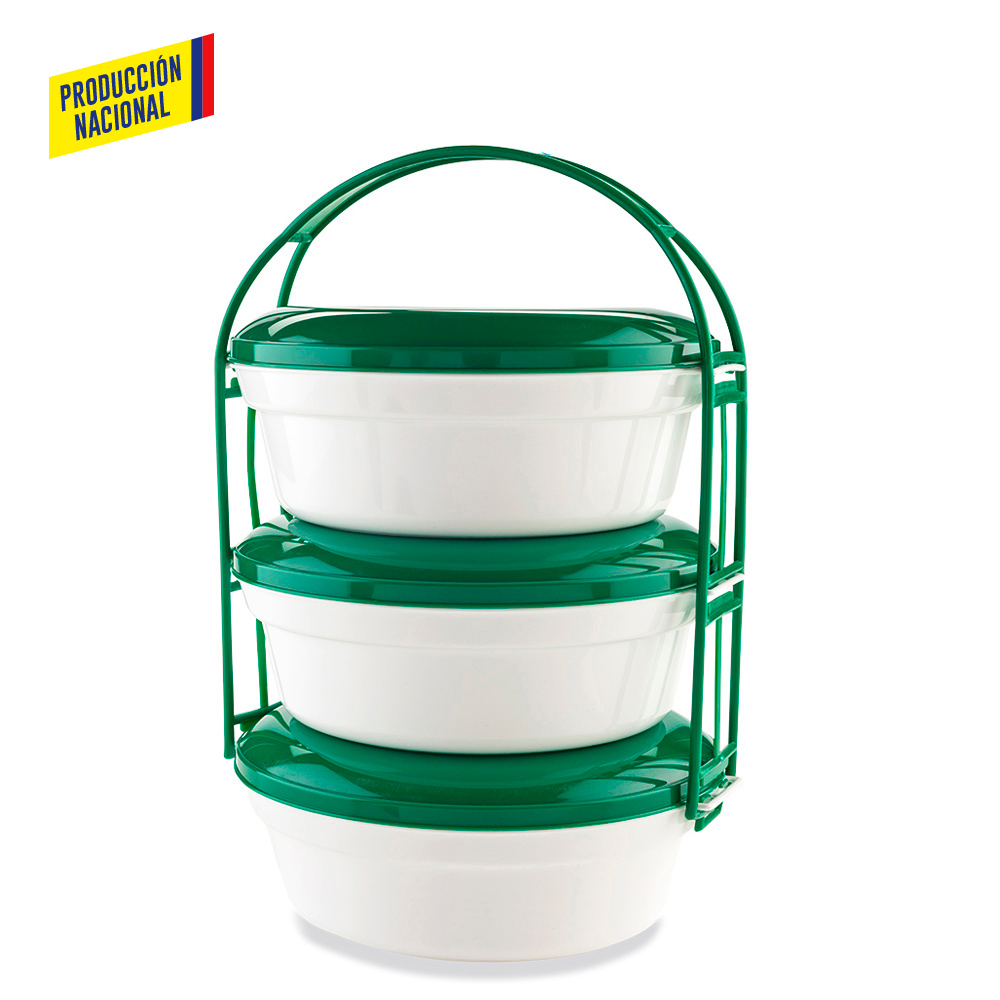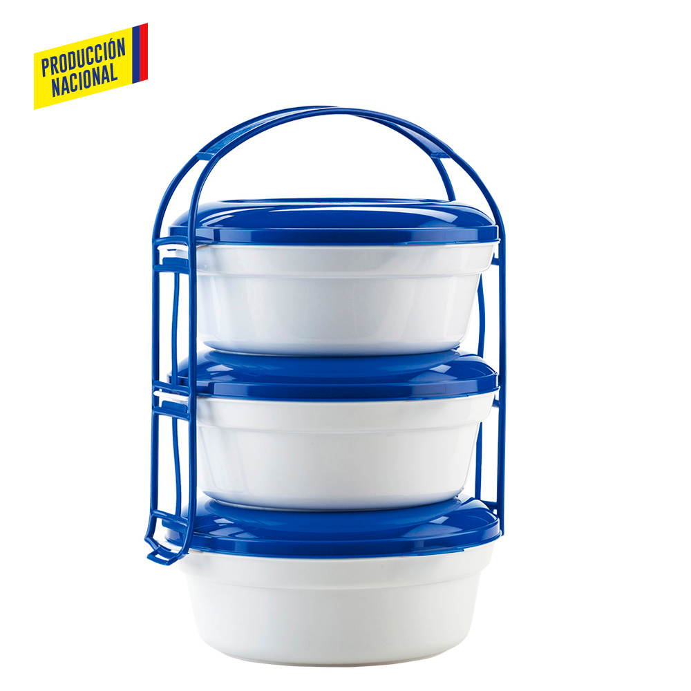 Set de portacomidas por 3 unidades en polipropileno, apilables para fácil almacenaje.