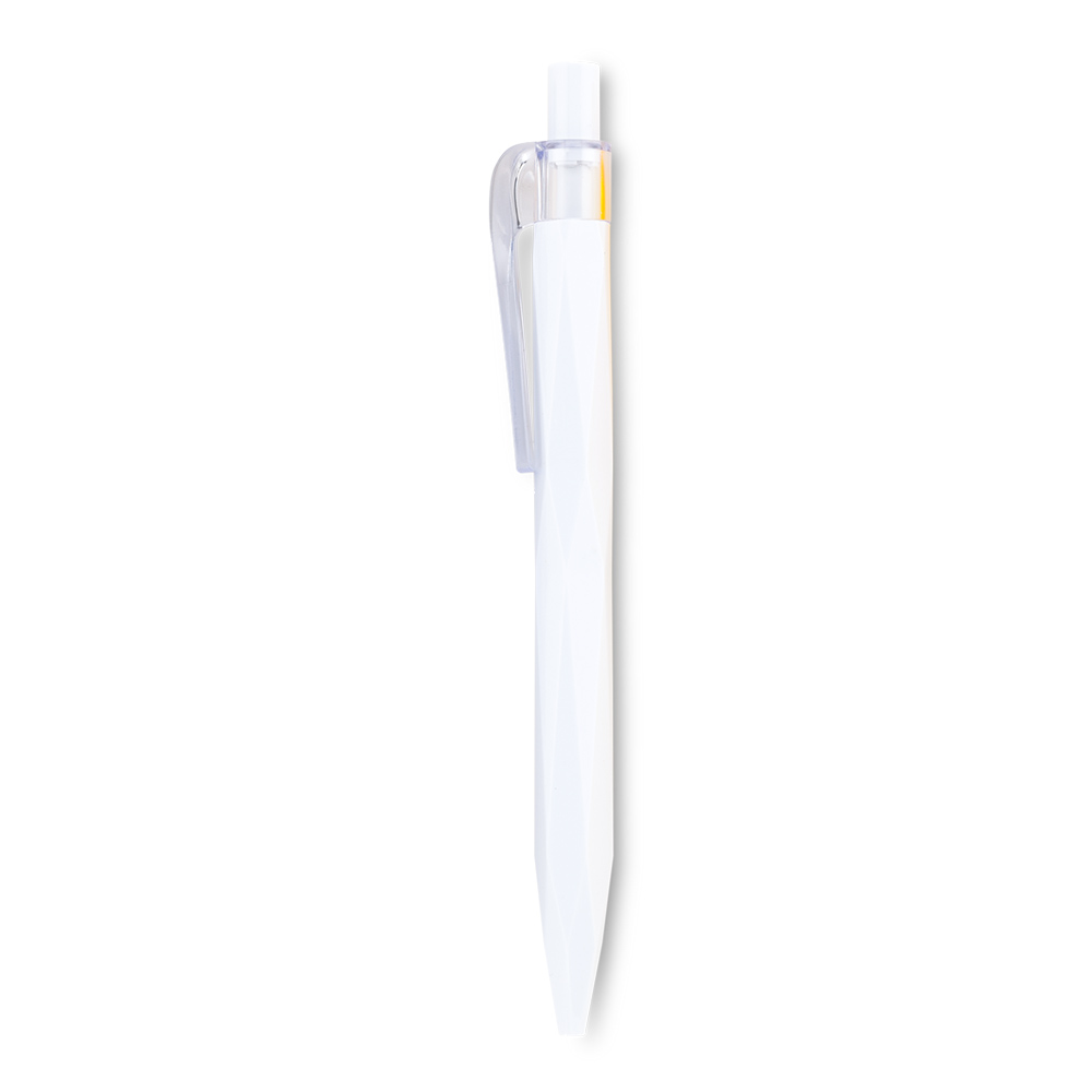 Bolígrafo plástico con acabado geométrico en rombos, clip plástico. Medidas: 13.5 cm Marca: 2.5 cm / Tampografía en el clip