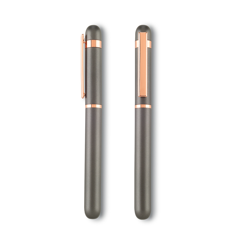 Bolígrafo metálico tipo roller. Empaque caja individual. Medidas: 13 cm. Marca: 3 cm / Tampografía / Láser.