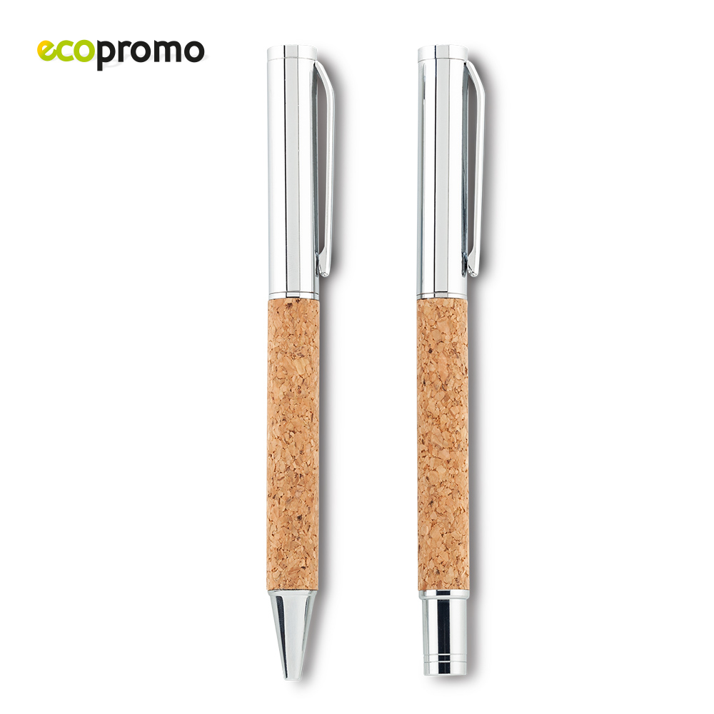 Set de bolígrafo y roller con partes en corcho en caja de corcho. Empaque caja individual. Medidas: Estuche: 17.5 cm x 6.5 cm x 2.7 cm. Bolígrafo: 14 cm Marca: Estuche: 4.5 cm Bolígrafo: 4.5 cm / Láser