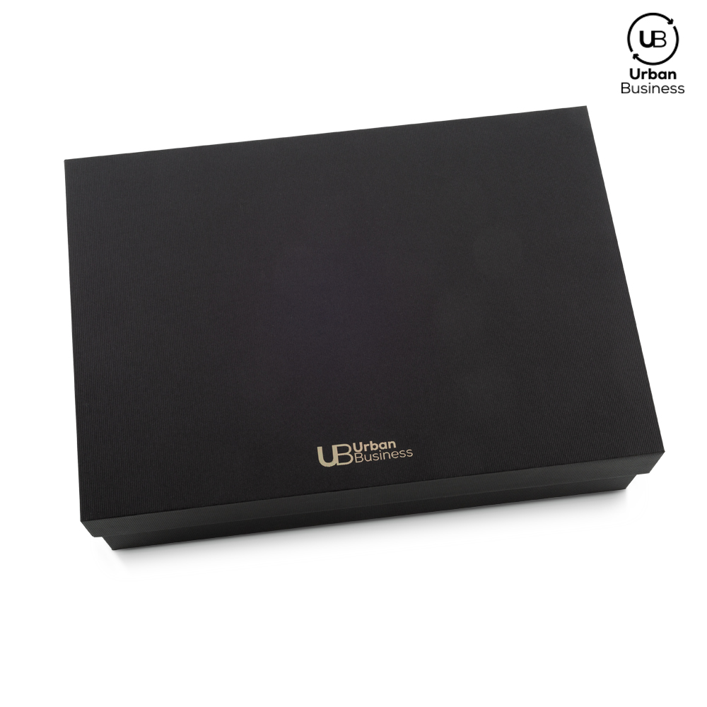 Set de libreta de 21 cm x 14.5 cm de 96 hojas rayadas con cubierta en poliueretano, mug de 500 ml, doble pared en acero Inoxidable, con aislamiento térmico que mantiene la bebida fría o caliente hasta 6h aprox (puede variar dependiendo de condiciones climáticas), tapa pestaña y grip de silicona para mejor agarre. Bolígrafo metálico roller. Empaque caja individual.