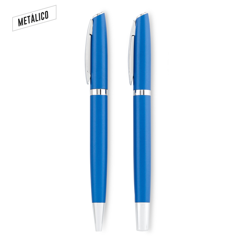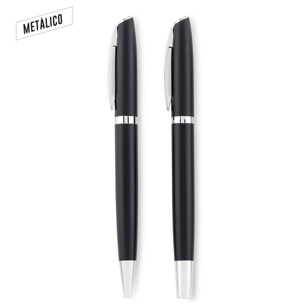 Set de bolígrafo y roller metálico en caja de cartón. Empaque Caja Individual.