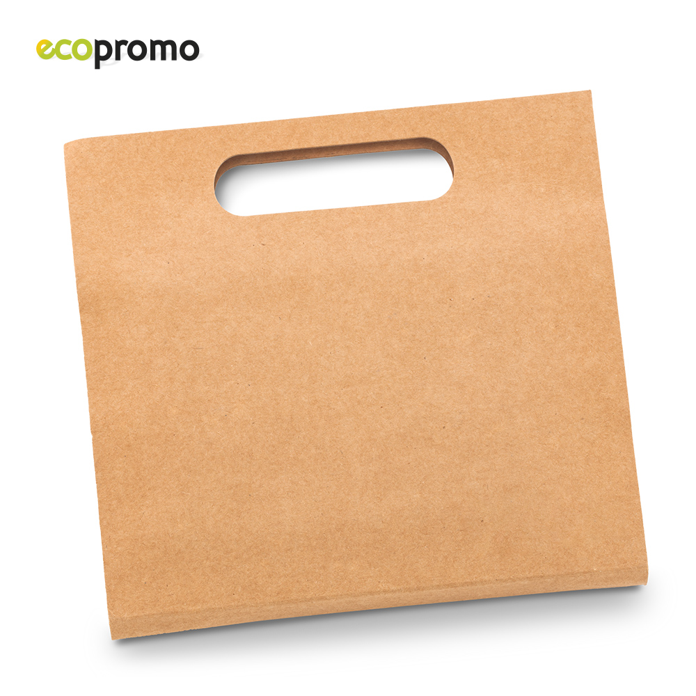 Cubierta kraft de 350 g, papel blanco de 80 g (30 páginas aprox), borrador, 6 colores, tajalápiz. Medidas: 20 cm x 21 cm x1.6 cm. Marca: 5.5 cm / Tampografía