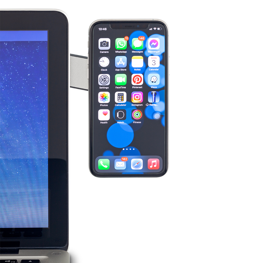 Soporte metálico adhesivo para colocar en la parte posterior del monitor. Debe ser pegado en superficies planas. La punta magnética soporta el móvil al pegar la placa metálica en la parte posterior. El móvil debe tener carcasa delgada o no tenerla. Se sugiere para móviles de hasta 7” o 220gramos de peso. Medidas Cerrado: 12 cm x 3 cm Marca: 5 cm / Láser Nota Importante: Debe limpiar muy bien la superficie del dispositivo antes de pegar el soporte y la lámina metálica, que estén completamente secas, no pega en superficies porosas, deben ser completamente lisas. Adherir y presionar firmemente…