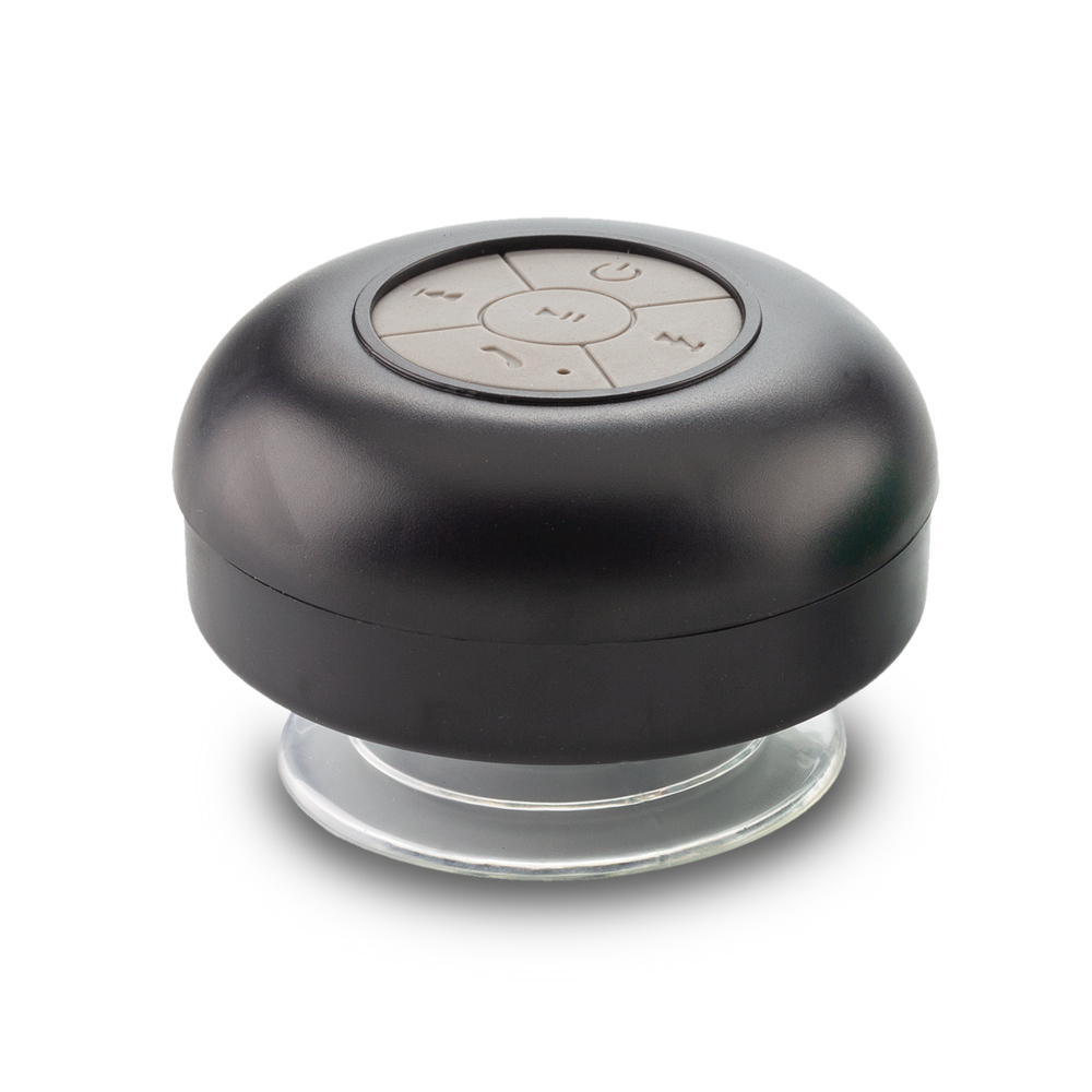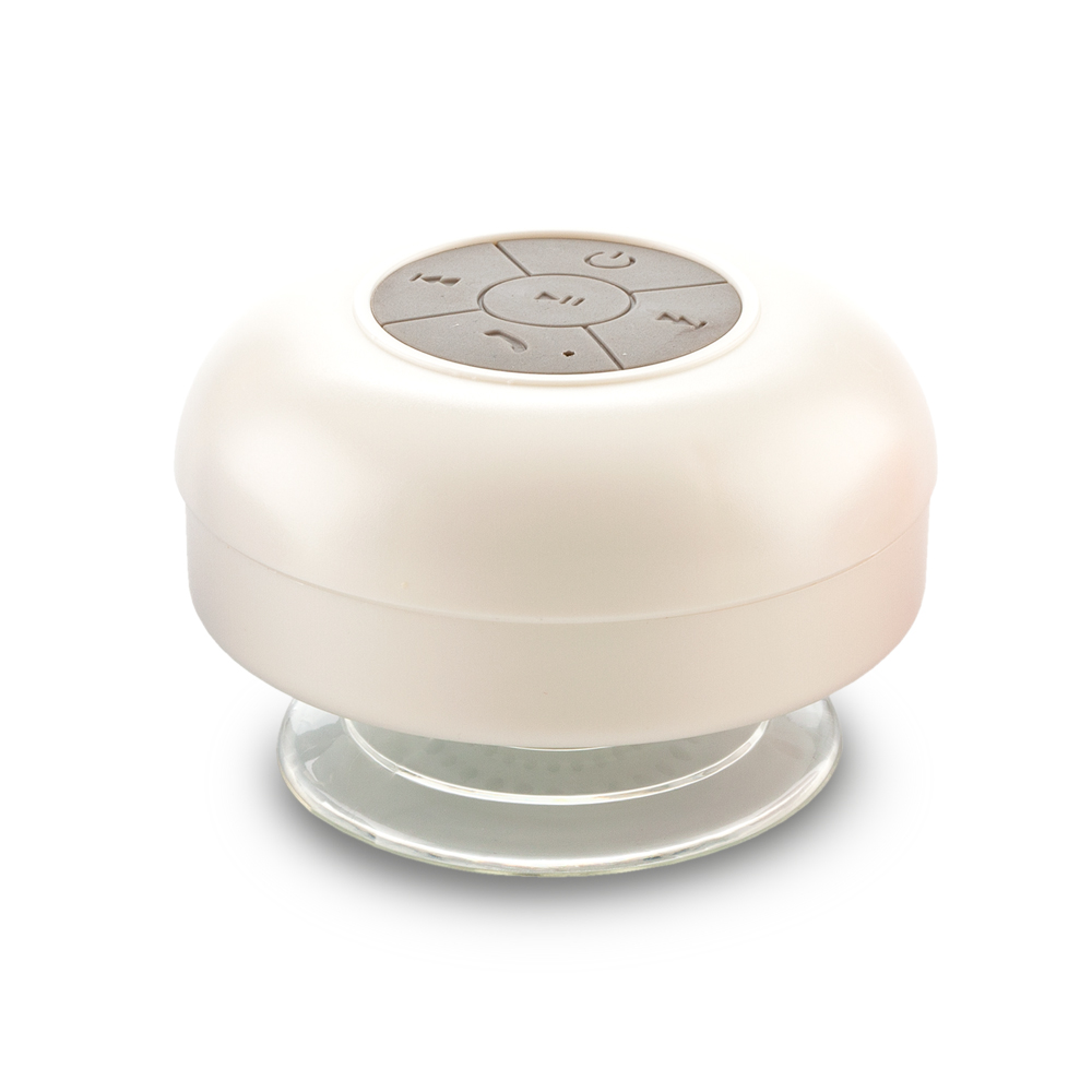 Speaker Bluetooth en plástico con chupa, resistente al agua, 3W. Tiempo de carga de 2 a 3 horas y tiempo de funcionamiento de 1.1/2 a 2 horas. Empaque caja individual. Medidas: 5 cm x 8.3 cm diámetro. Marca: 2 cm / Tampografía
