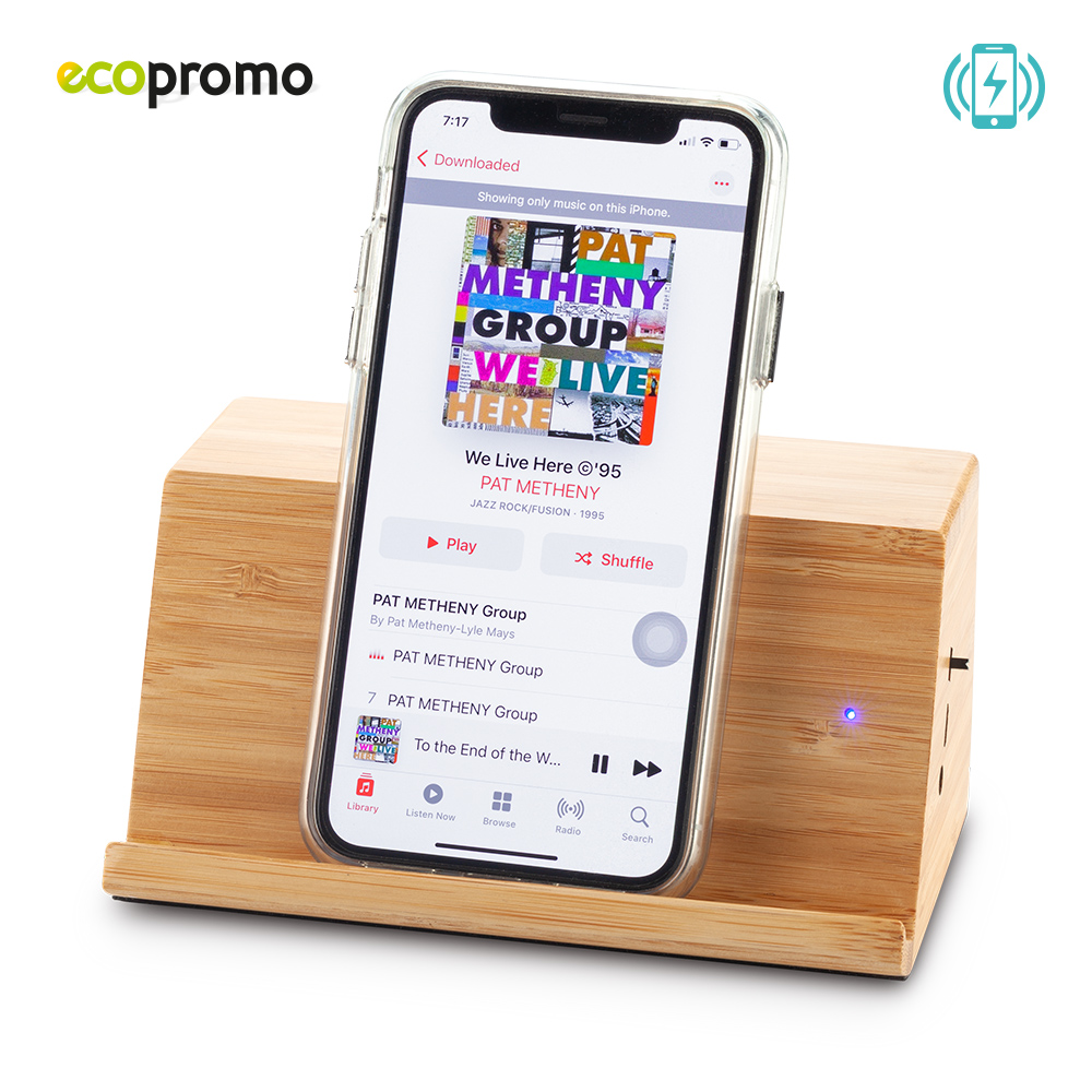 Speaker de inducción 2X3W, no necesita conexión bluetooth, con porta celular y cargador inalámbrico de 10W incorporado. Empaque caja individual. Medidas: 14.5 cm x 9 cm x 7 cm Marca: 7 cm / Láser