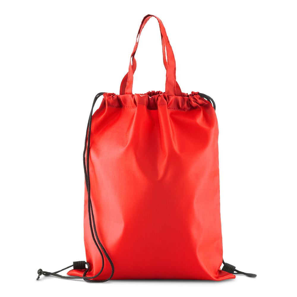 Bolsa tula en poliéster con cordón para cargar y manijas.