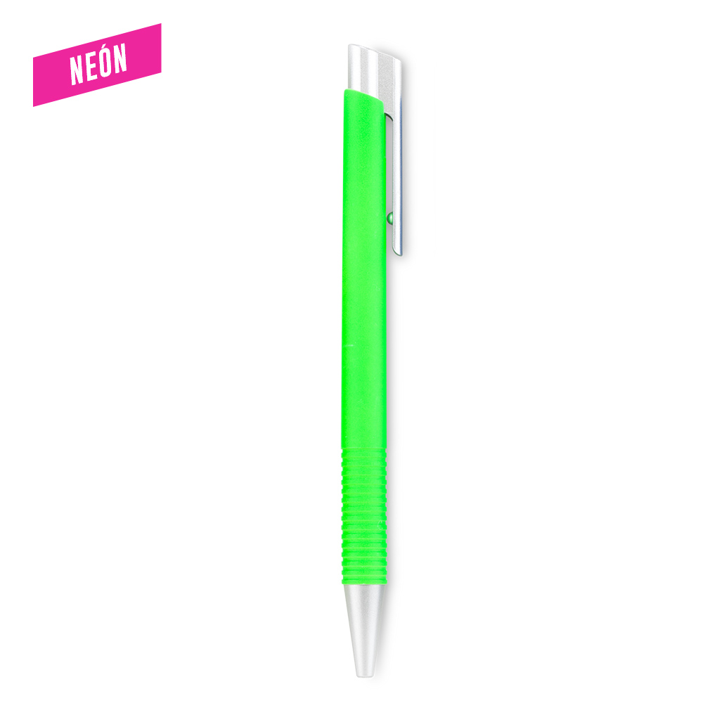 Bolígrafo plástico en colores neón. Medidas: 14 cm Marca: 2.5 cm / Tampografía