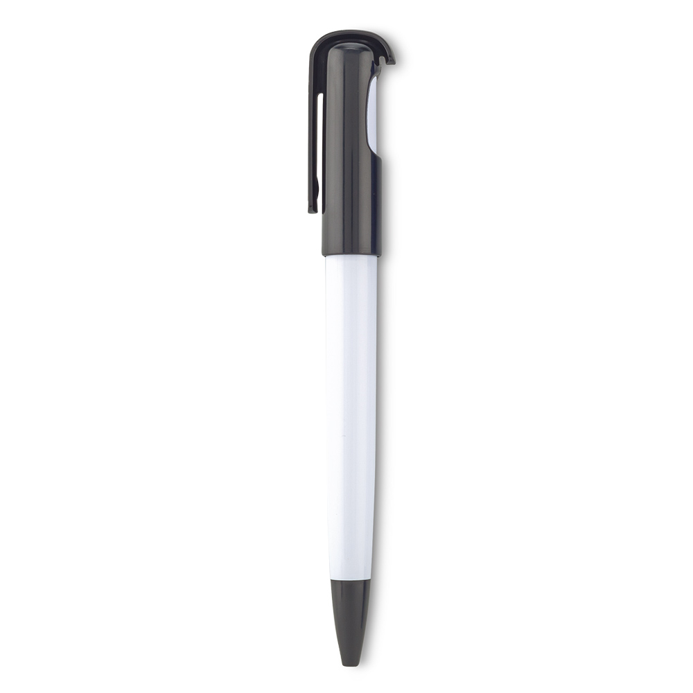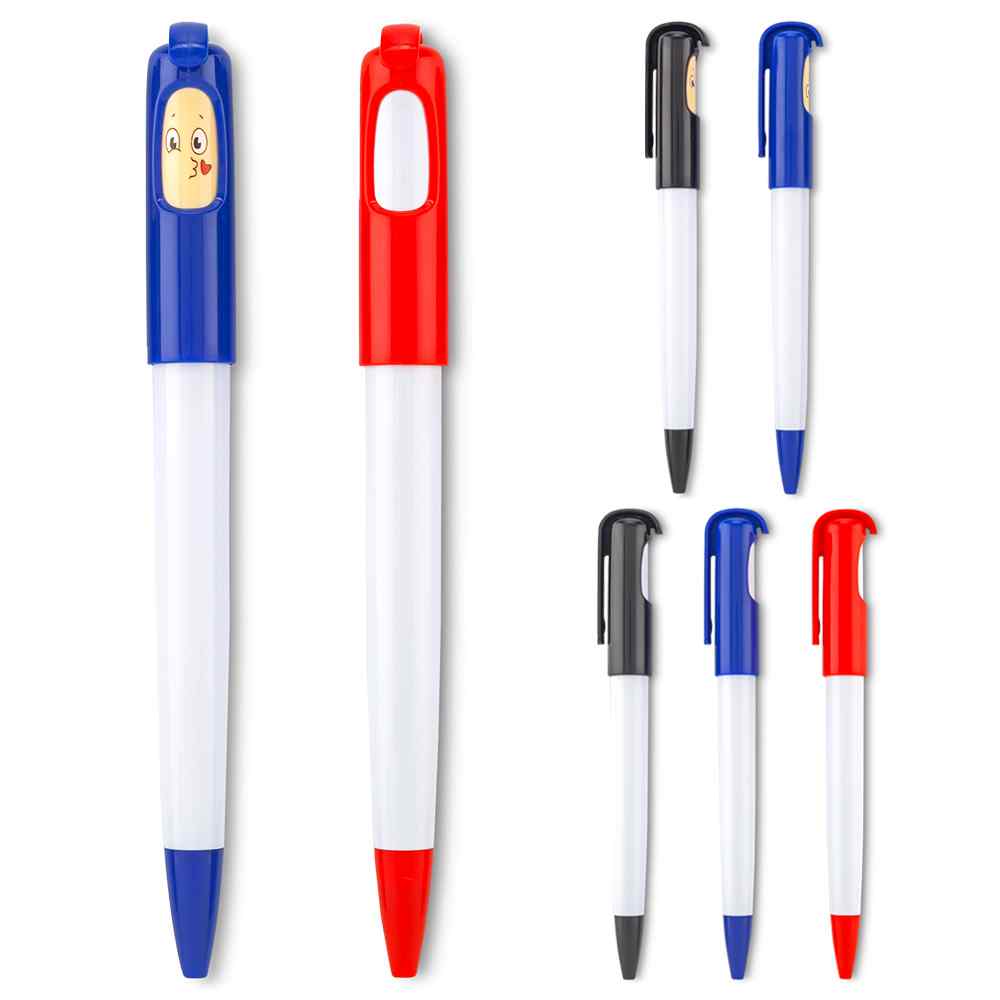 Bolígrafo plástico con barril interno giratorio. Barril interno opcional con tres caras o sin impresión para hacer tres logos. Mecanismo push.