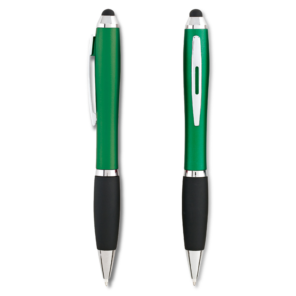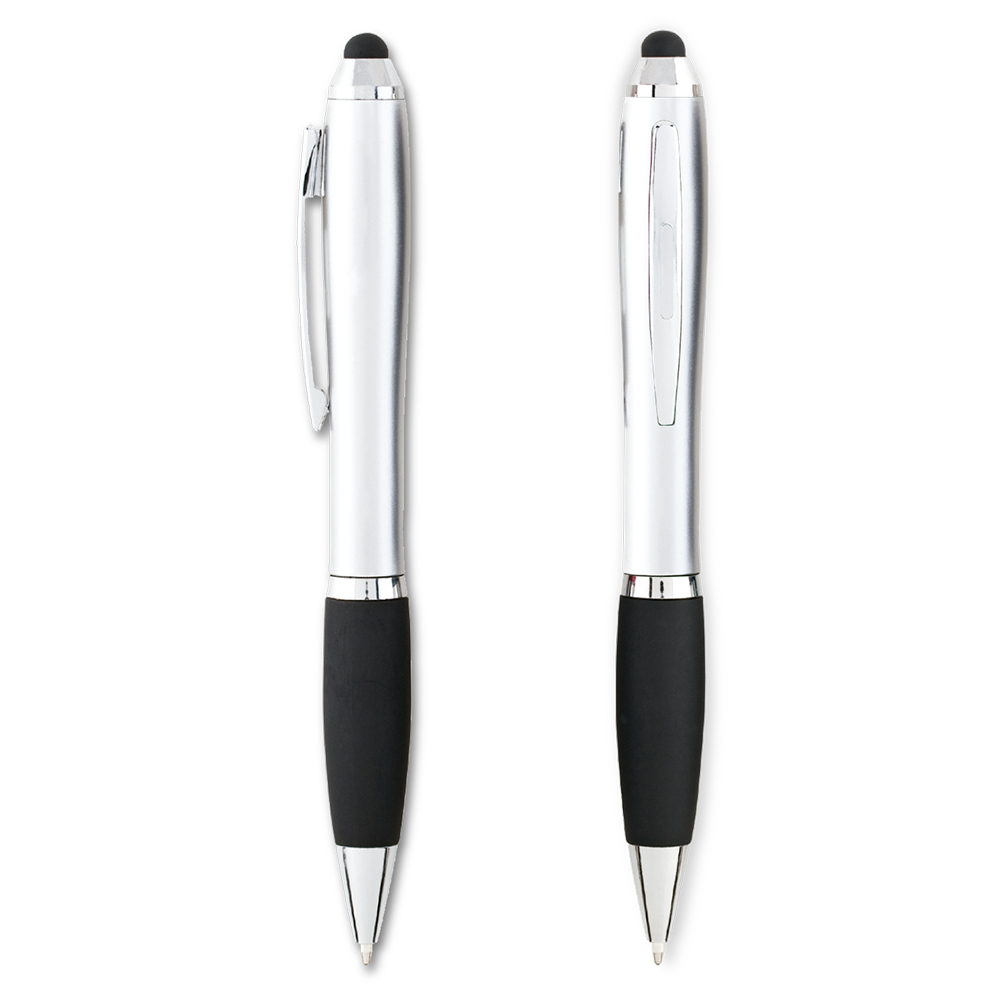 Bolígrafo plástico con stylus. Clip metálico. Medidas: 13.5 cm Marca: 3.5 cm / Tampografía