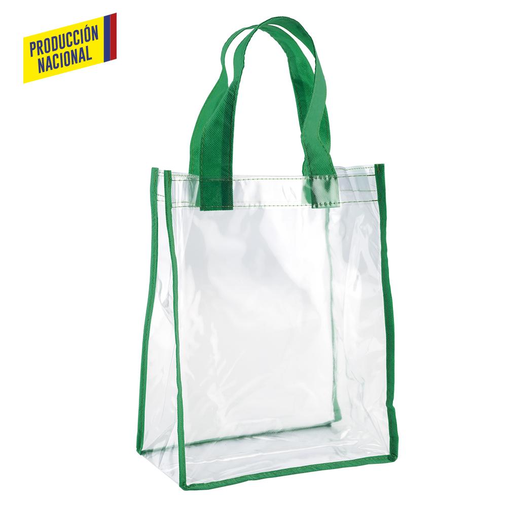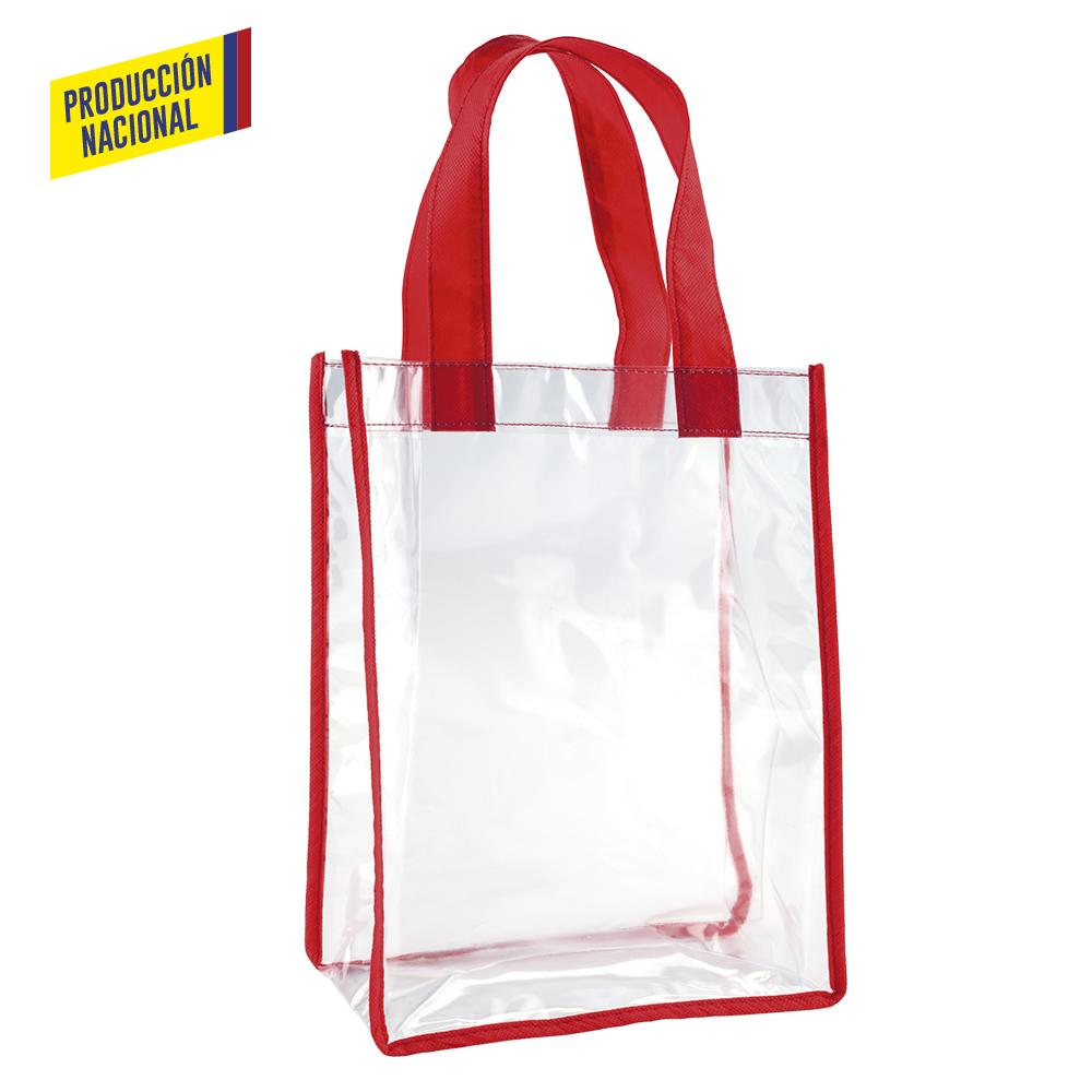 Bolsa en clear, ribete de color con fuelle.