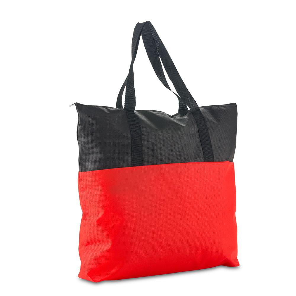 En cambrel cosida, con cierre de cremallera y fuelle en la base. Medidas: ancho 45 cm x largo 38 cm x fuelle (en la base) 8 cm Medidas Manijas: 34 cm Marca: 26 cm / Sreen