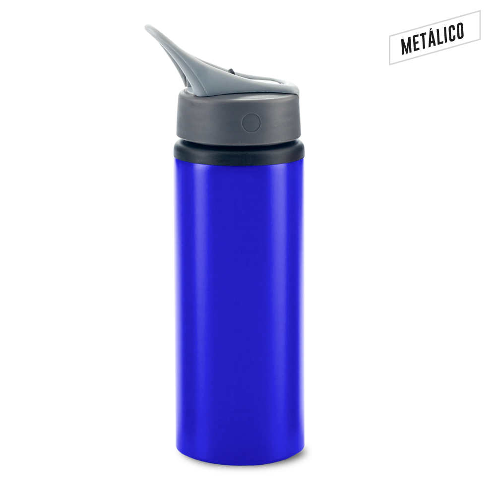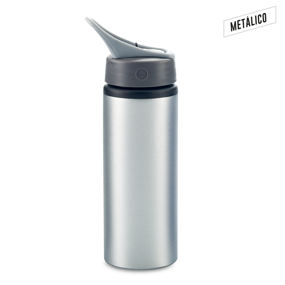 Botilito metálico con tapa pitillo. Medidas: 24 cm x 7.2 cm diámetro Marca: 5 cm / Tampografía, producto con tratamiento / Láser (Líquido Oxidante en silver)