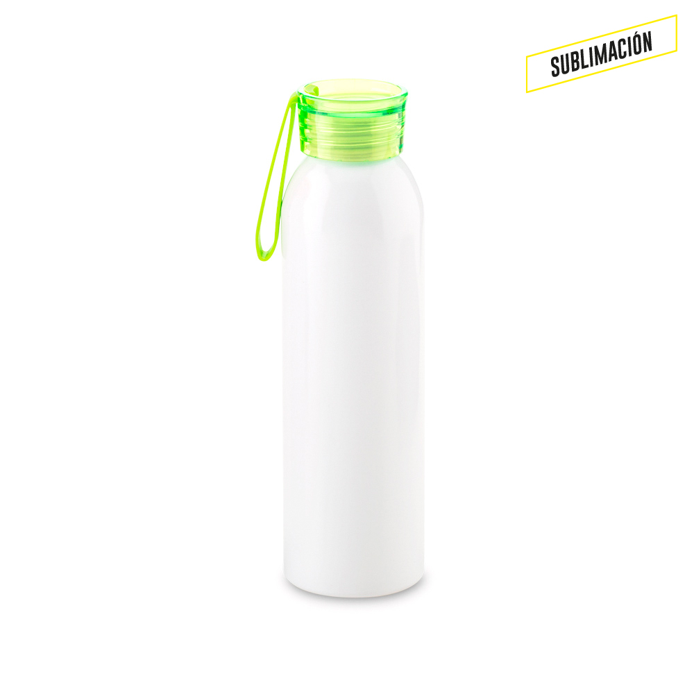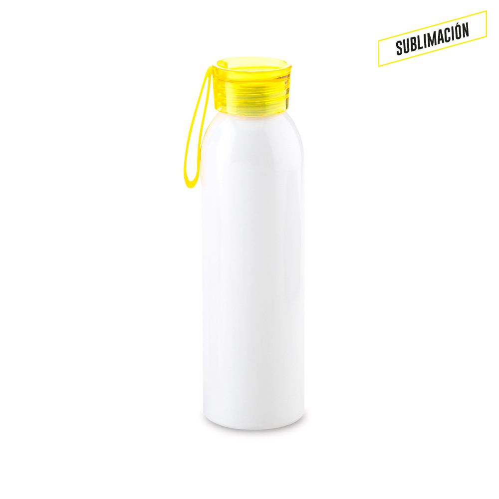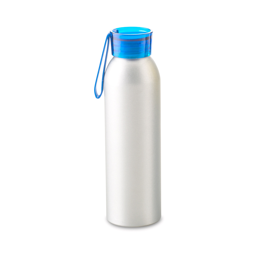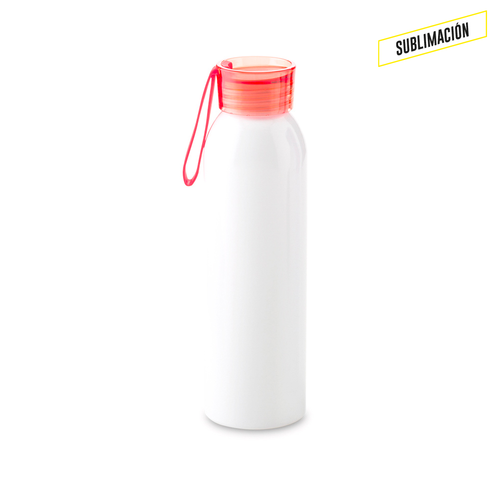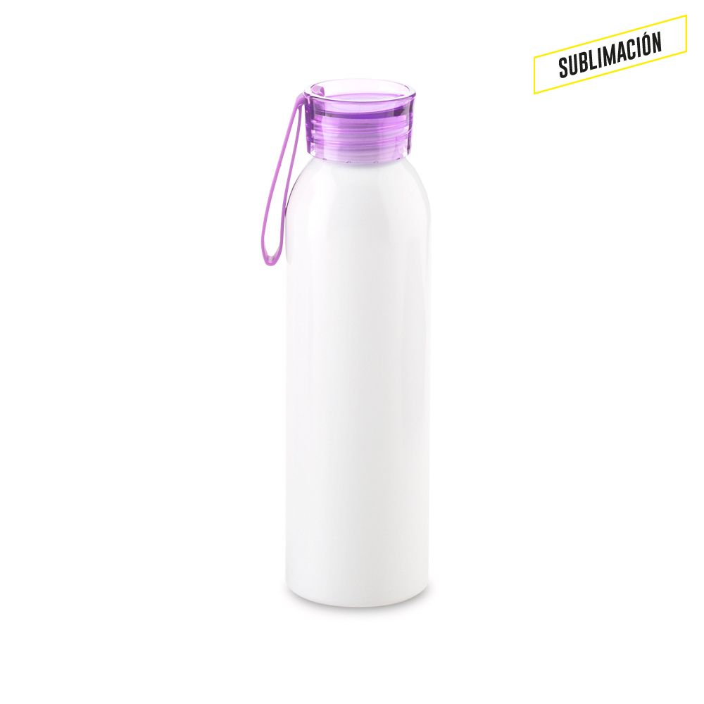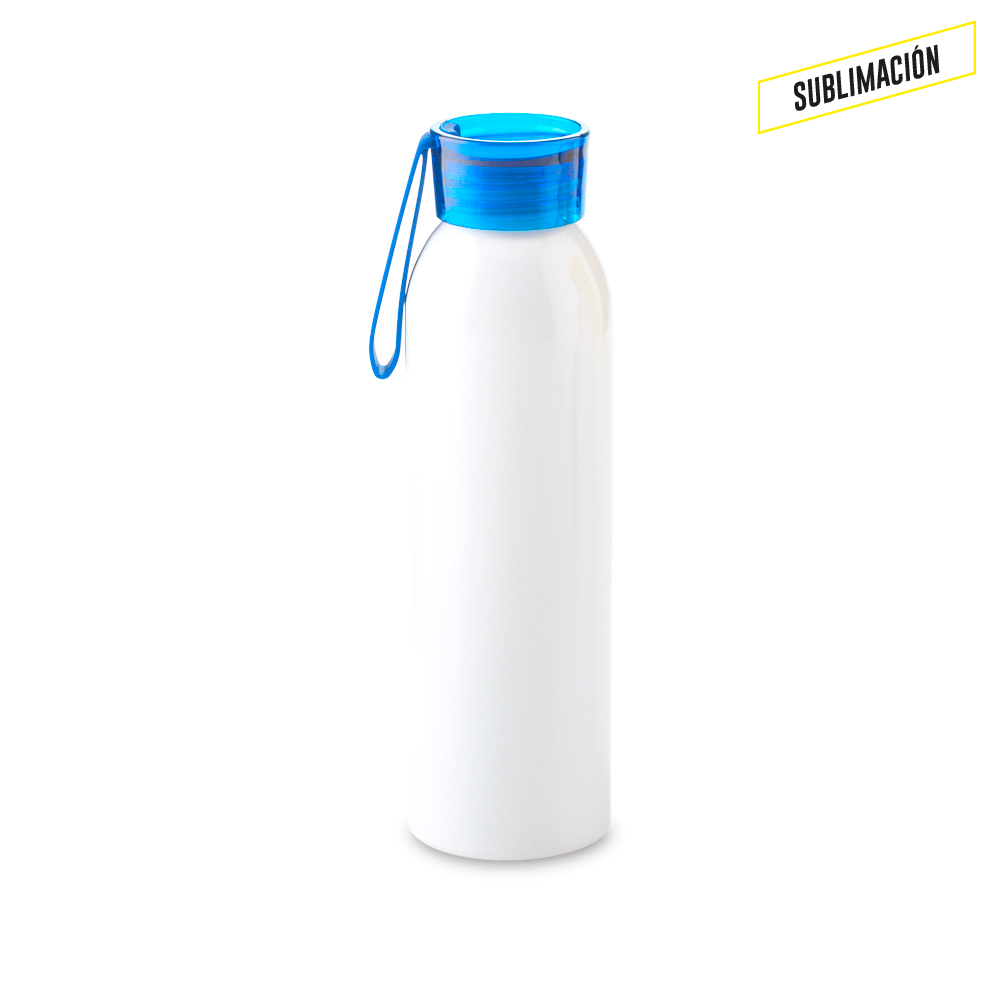 Metálico con tapa plástica translúcida y agarradera en caucho. No apto para bebidas calientes. Color de botella opcional entre blanco y silver. Color de tapa a elección.
