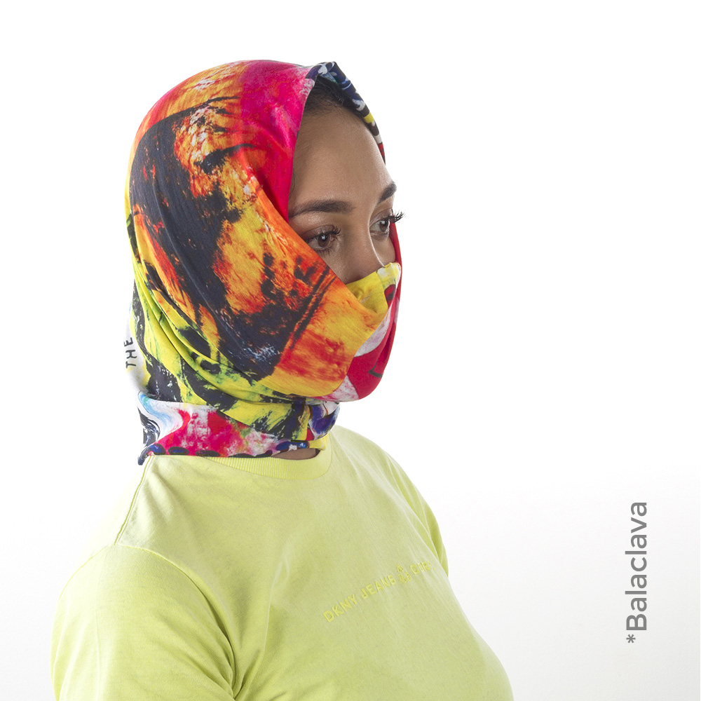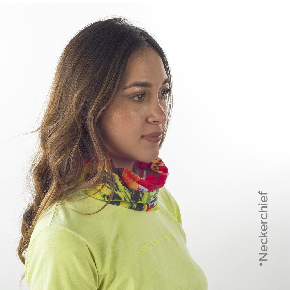 Cuello multifuncional en poliéster para sublimación. Con múltiples usos: bufanda, máscara, banda para el cabello. Tubular, sin costuras laterales.