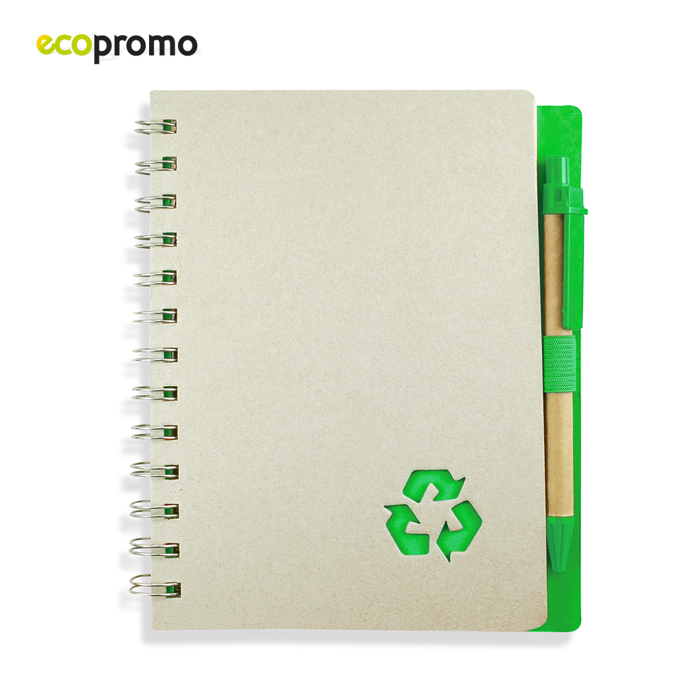 Libreta argollada y bolígrafo de cartón. 80 hojas.