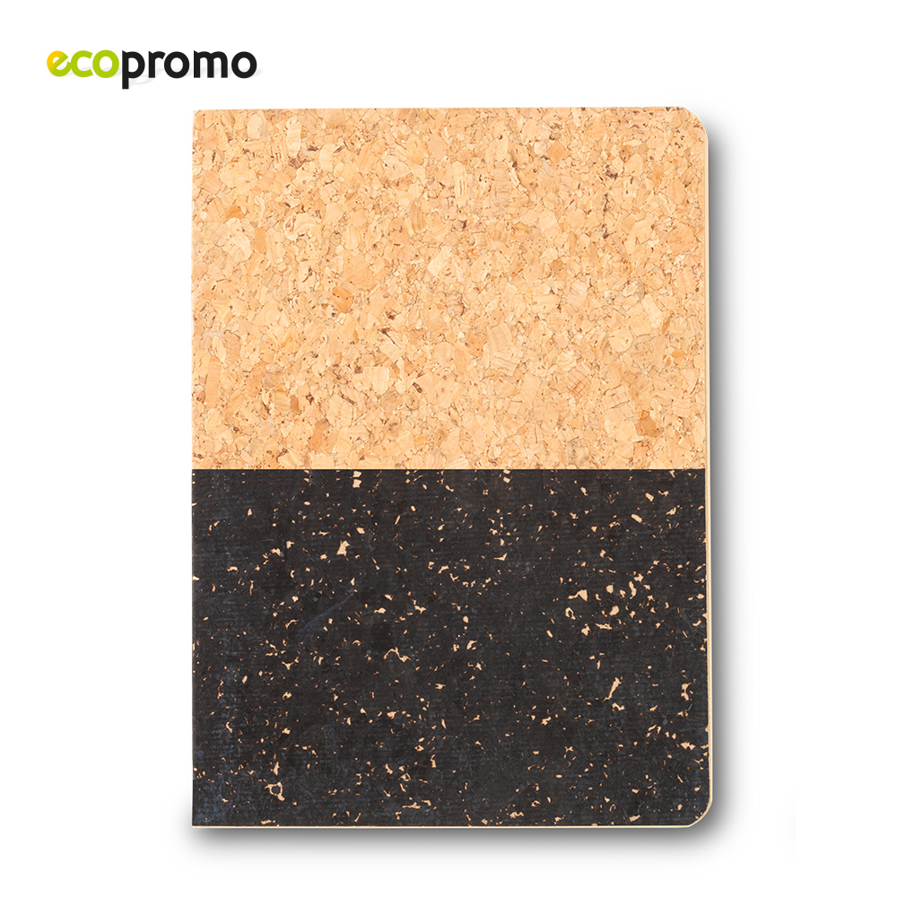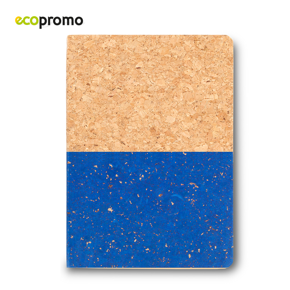 Cubierta elaborada en corcho, 80 hojas de papel de 70g reciclado con rayas.