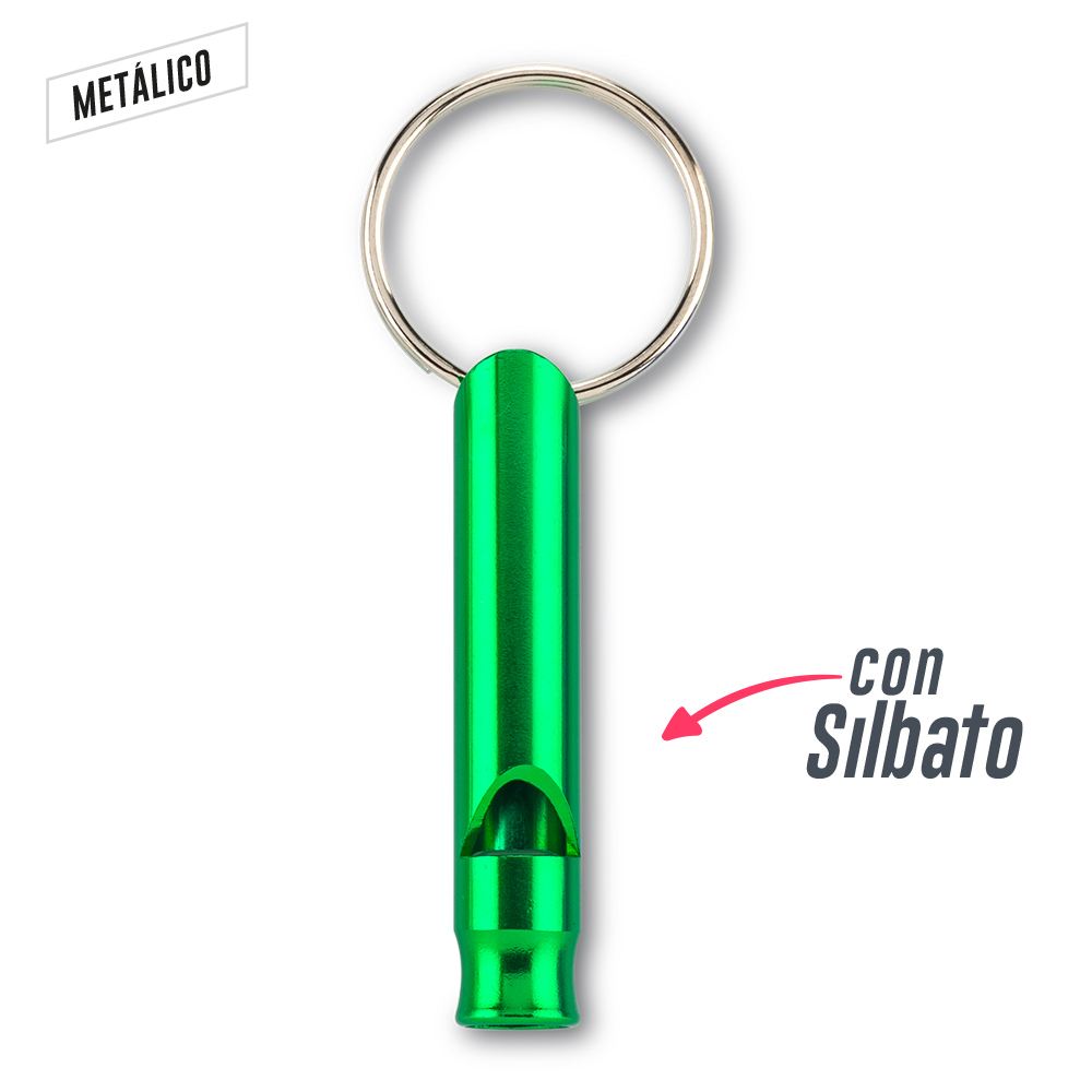Mini Llavero metálico con silbato. Medidas: 4.5 cm x 0.8 cm diámetro Marca: 2.5 cm x 0.5 / Tampografía con Tratamiento