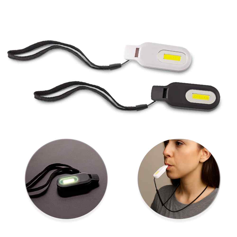 Pito plástico con luz. Medidas: 8 cm x 3 cm x 1.8 cm. Marca: 1.5 cm / Tampografía.
