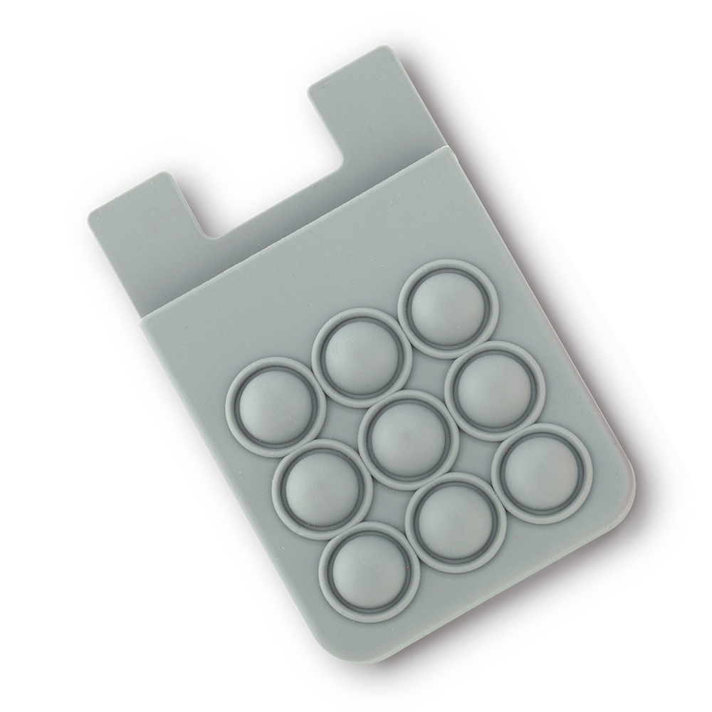 Portatarjetas antiestrés adhesivo para móviles. Medidas: 5.6 cm x 8.5 cm Marca: 2.5 cm / Tampografía en silicona a una tinta